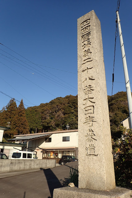 今天的目標是第二十八番寺院大日寺,從遍路地圖本估算起來,大約還有16.5公里,是悠閒的走怎麼樣都可以走得到的距離。撇開這裡還曬不到太陽不說,此刻的天空看起來跟昨天相仿,萬里無雲,會是一個陽光燦爛的好日子。